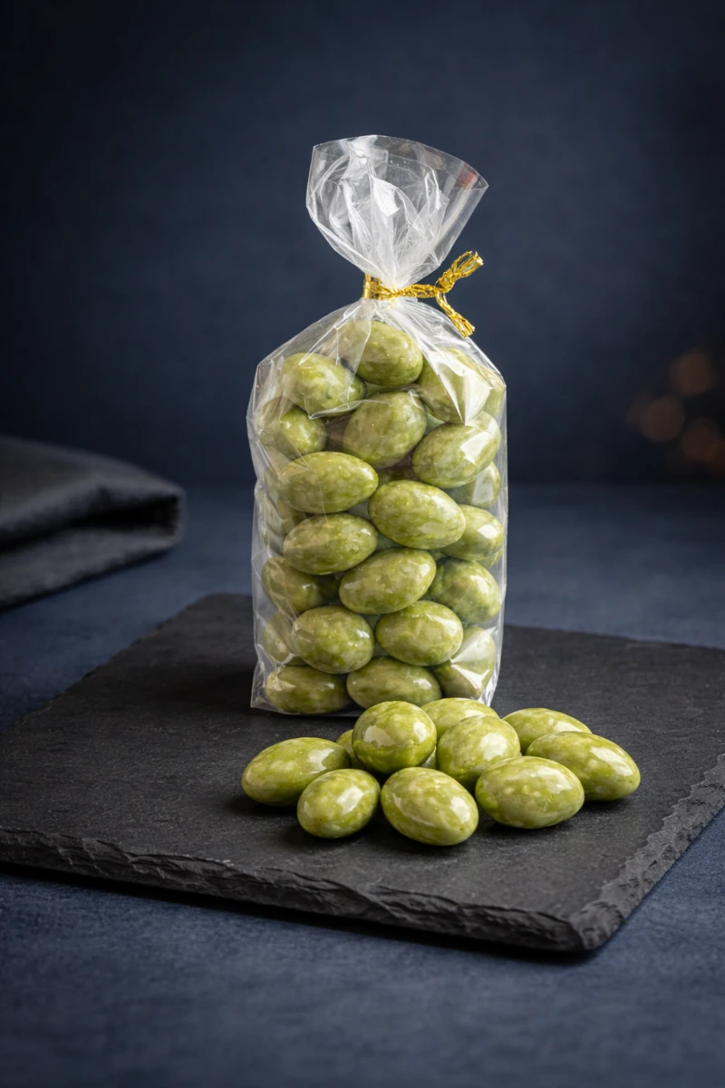 Ces amandes délicatement enrobées de chocolat offrent un parfait équilibre entre croquant et fondant.